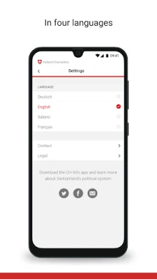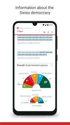 How does a popular vote come about? Which parties are represented in Parliament? How is Switzerland governed? How are laws drafted? The answers to these questions can be found in the ‘CH info’ app. It is aimed at the general public, but is used by schools in civics lessons, local authorities recommend it to potential naturalisation candidates and businesses distribute it to their stakeholders.