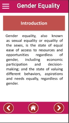 Gender Equality is an educational app for anyone who wants learn about the gender equality subjects.