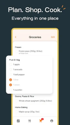 Never write a grocery list again. The app will create one for you instantly. Buy exactly what you need for your meal plan. Check things off as you shop and add personal items to the list too.