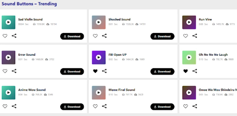 Discover a collection of entertaining sound buttons, meme generators, unblocked soundboards, and a variety of free sound effects. Easily download these sound buttons directly to your smartphone, desktop, or tablet for instant fun and amusement.