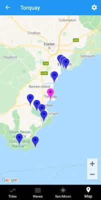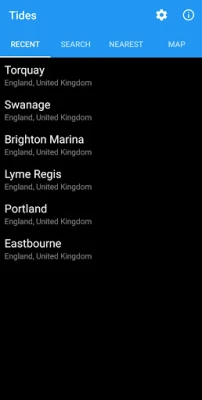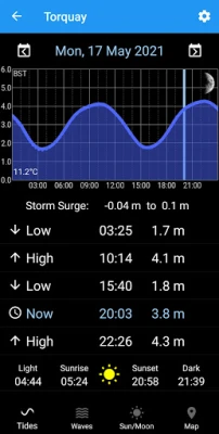 Tidal predictions for over 8500 locations showing high/low tide times, tide curve and current predicted tide height.
