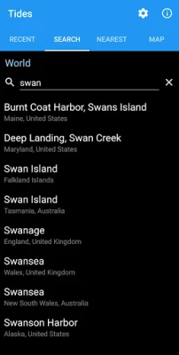 - Search, nearest and recent locations.