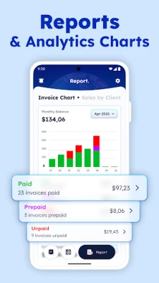 Invoice Maker app - With our smart app, you can easily create and manage invoices & estimates in one place. Deliver invoices and estimates directly to clients with ease. Track payment status (Paid or Unpaid) and stay organized with clear billing reports and charts. Everything you need in your invoice builder, estimate maker and billing app - all together in one.