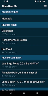 Tides Near Me focuses on nearby tide stations and current tidal conditions. Quickly learn the time of the last and next tide and current, as well as when the sun and moon will rise or set. Fully automated tide tables, charts, and predictions.