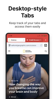 Vivaldi is also available on Windows, Mac, and Linux! Pick up where you left off by syncing data across devices. Open tabs, saved logins, Bookmarks and Notes seamlessly sync to all your devices using end-to-end encryption and can be further secured by an encryption password.